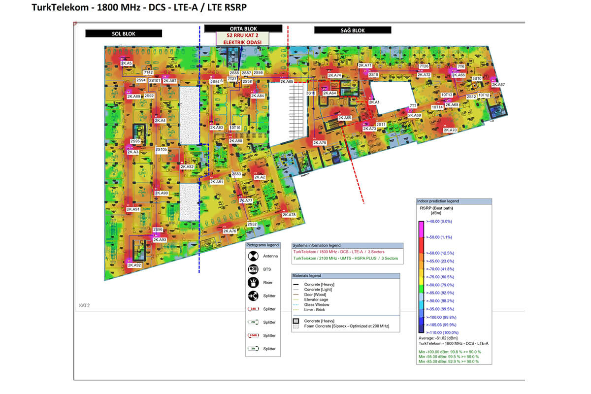 Tespit edilen anten montaj noktaları, sektörün önde gelen profesyonel yazılımlarından biri olan iBwave platformu üzerinden işlenerek kapsamaya yönelik Dizayn Plan hazırlanır. Bu kapsamda: